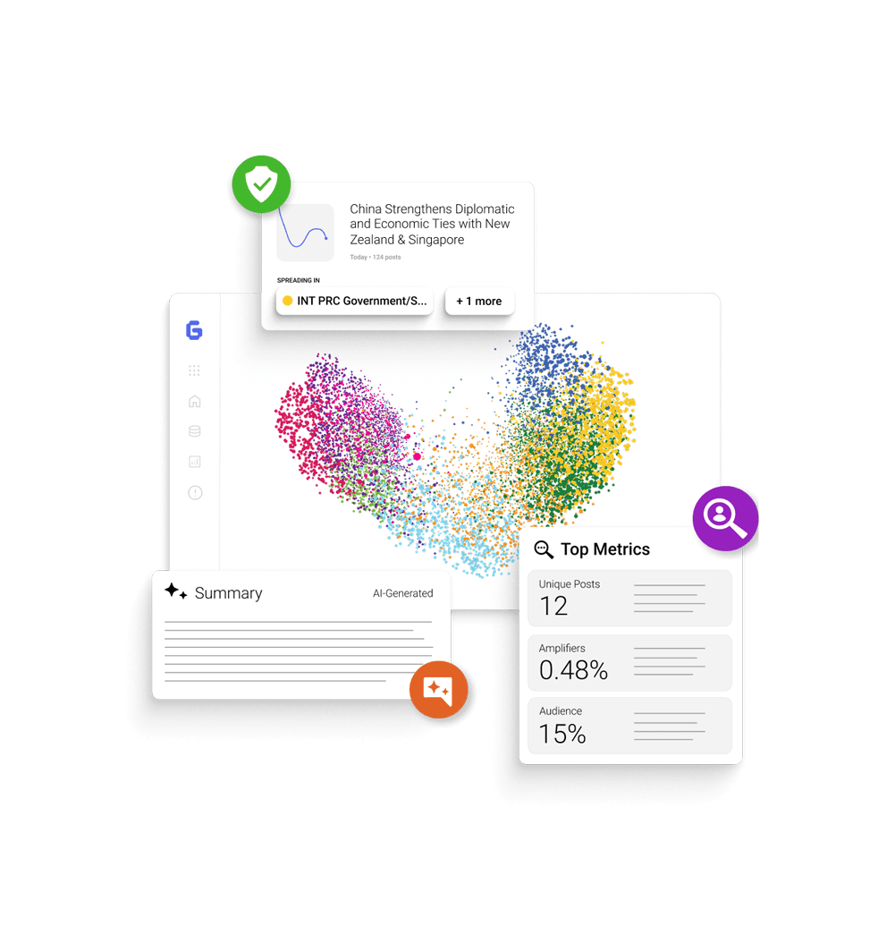 Uncover foreign-backed influence operations, detect narrative manipulation, and mitigate cyber threats that impact global policy and security.