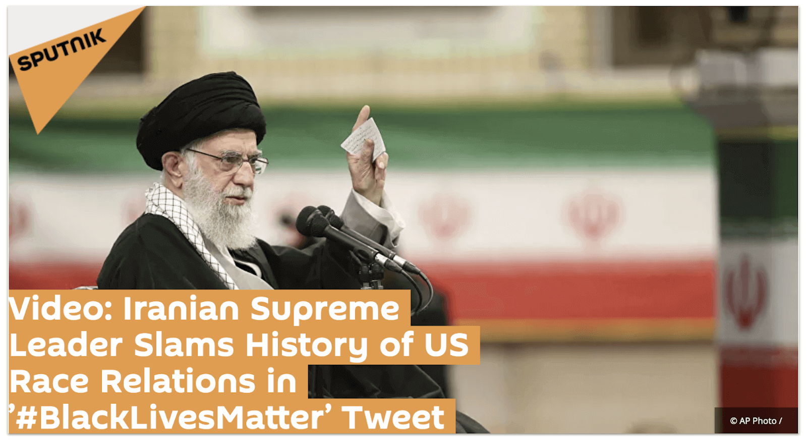 Sputnik article amplifying attack on U.S. race relations attributed to Iran’s Supreme Leader.