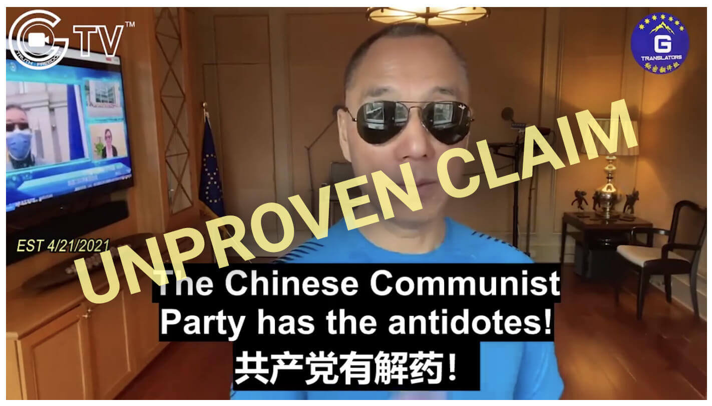 Video from April in which Guo Wengui claims the CCP has Covid-19 antidotes.