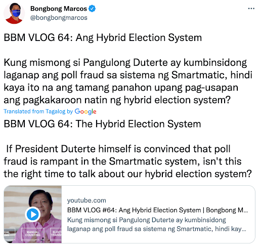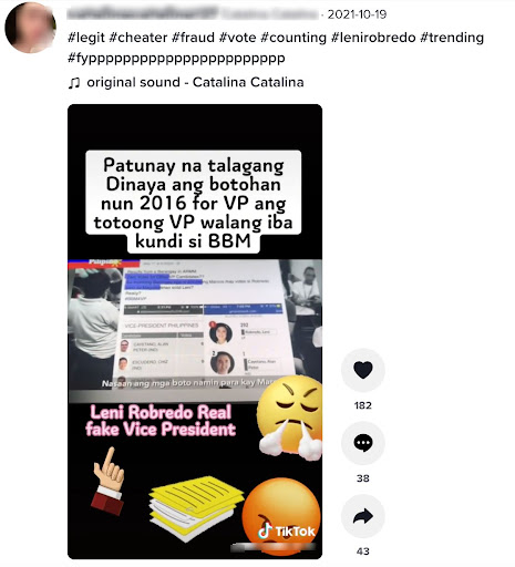 In recent years, the Philippines has become a bellwether for electoral trends across the globe. After losing the 2016 vice-presidential election to Leni Robredo, Bongbong Marcos and his massive online network of supporters spread false claims suggesting the election had been “stolen” via voter fraud and voting-machine manipulation. Marcos supporters blamed the alleged fraud on Robredo, her supporters, the Philippines Commission on Elections, voting-machine manufacturer Smartmatic, and “deep state” government officials opposed to Marcos. In 2020, the Solicitor General, a Marcos supporter, used these claims to petition the Presidential Electoral Tribunal to nullify votes from three contested provinces that would overturn Robredo's 2016 victory. The petition has since been tabled and rendered moot by the upcoming presidential election.