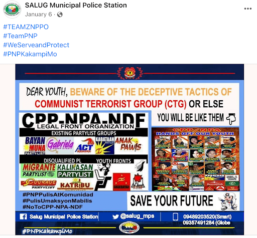 Although the Filipino government has used red-tagging for decades, its use resurged under Duterte through official red-tagging pronouncements and social media posts, according to Human Rights Watch. Graphika’s analysis shows red-tagging to be prevalent across several platforms, and that it is often deployed haphazardly against politicians critical of Marcos and Duterte, members of the media, and civil society organizations. Of particular concern is the use of multiple government institutions to formalize red-tagging and subsequent physical attacks against its victims. For example, Graphika found evidence that social media accounts affiliated with the police had attempted to red-tag left-wing political organizations.