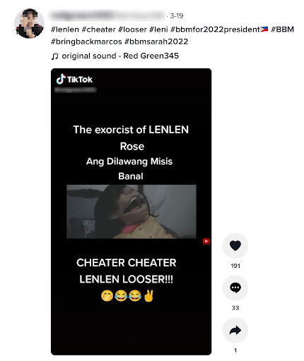 But this violent affinity between Marcos and Duterte supporters is not new. A January Rappler study reported that as the media began to increase coverage of the 2022 election, online harassment of journalists by Marcos and Duterte supporters rose in tandem. Harassment has included media such as a popular video depicting a violent exorcism of Robredo and encouraging individuals to share videos of themselves mocking “LenLen Loser.” Online calls for violence by Marcos and his supporters will continue to have offline consequences.