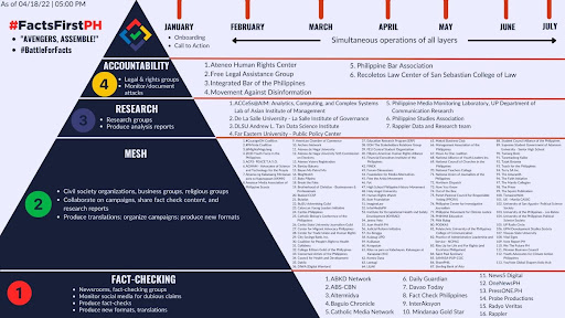 The continued denigration of the Philippines’ electoral institutions, the media, and civil society by Duterte, Marcos, and their supporters has fomented a crisis of legitimacy for democracy in the Philippines. At risk is not only the fate of these institutions but the lives of journalists, politicians, and citizens who sustain them. Filipino democracy is not watching passively, though. Despite the constant harassment and imprisonment of journalists, media outlets and fact-checking organizations, such as Rappler and VERA Files, continue to combat rampant disinformation campaigns. In 2019, and now again in 2022, Tsek.ph, a coalition of over 30 organizations spanning academia, media, and civil society, has fact-checked claims related to individual candidates and the broader electoral process. This year, a second coalition of over 120 Filipino media organizations, civil society groups, business organizations, and others joined together to launch #FactsFirstPH, a proactive effort to combat online electoral disinformation.