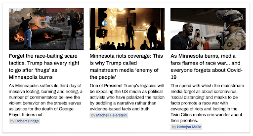 Overall, however, the Russian coverage and commentary on the U.S. protests focused more on the nationwide unrest and the authorities’ response, in line with earlier practice of reporting on genuine grievances in the West and letting the events speak for themselves.